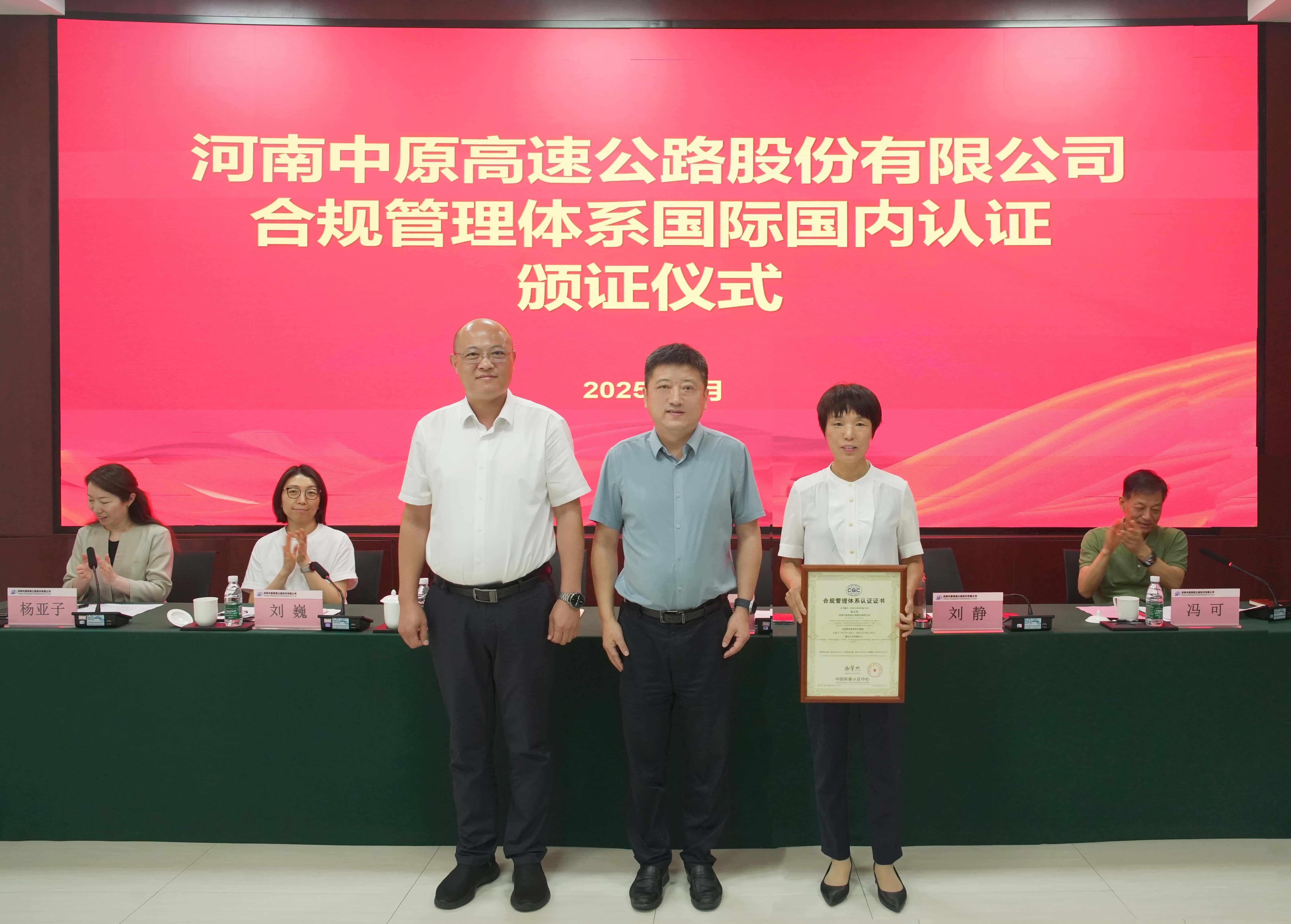 集團黨委委員、副總經理袁凍雷參加中原高速合規(guī)“雙認證”頒證儀式并專題聽取科創(chuàng)工作匯報